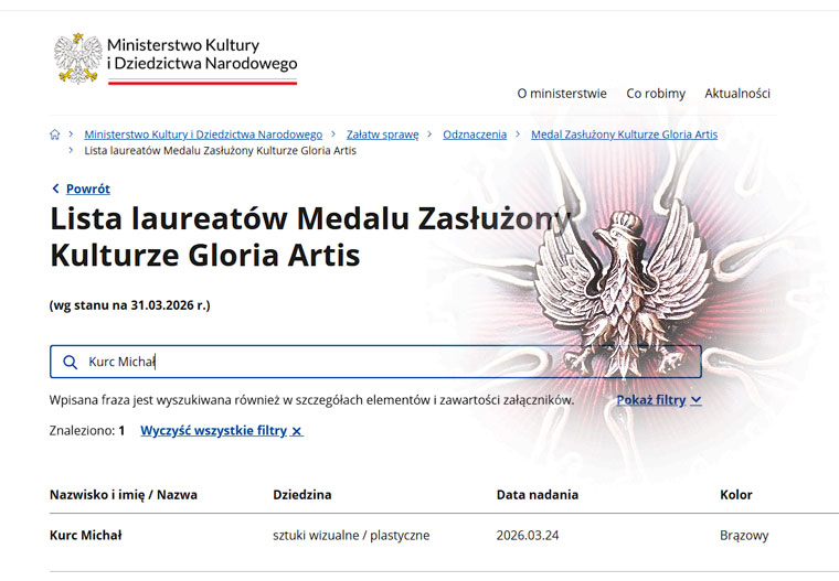 Kulturze Gloria Artis. Michał Kurc - sztuki wizualne/plastyczne -