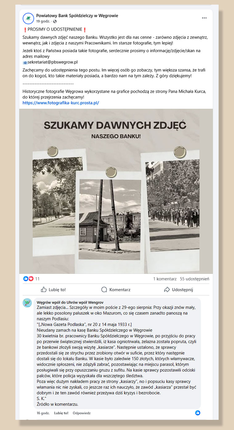 Historyczne fotografie Węgrowa wykorzystane na grafice pochodzą ze strony Pana Michała Kurca, do której przejrzenia zachęcamy!
