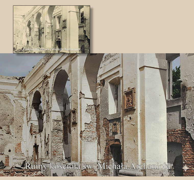 ... brama oraz dzwonnica przypominają kościół pw św. Michała - zniszczony w wyniku bombardowania przez samoloty sowieckie w dniu 26 lipca 1944 roku.