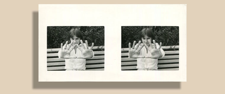 wykonujemy drugie zdjęcie. W ten sposób otrzymujemy dwie fotografie tego samego przedmiotu. Później w ciemni wykonujemy odbitki o podstawie 6.5 cm, które kładziemy obok siebie (lub naklejamy na karton) i oglądamy za pomocą przeglądarki