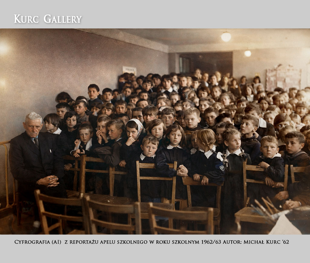 Cyfrografia (AI) z reportażu apelu szkolnego w roku szkolnym 1962/63 Autor: Michał Kurc ‘62